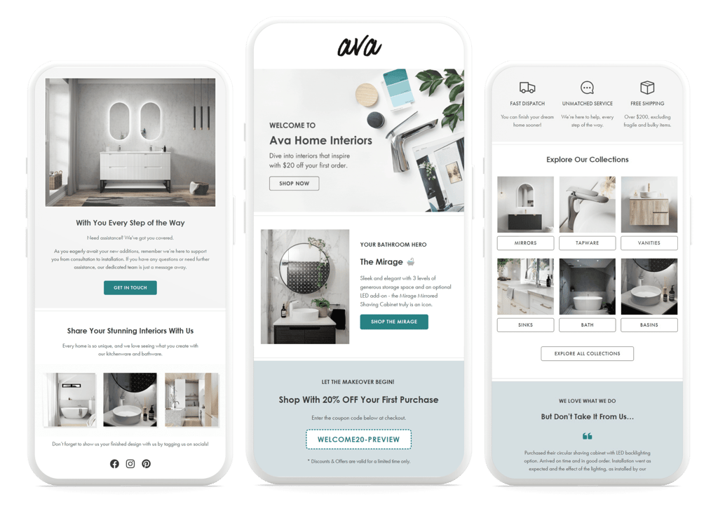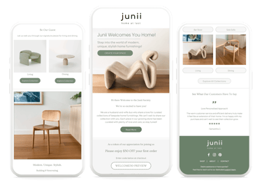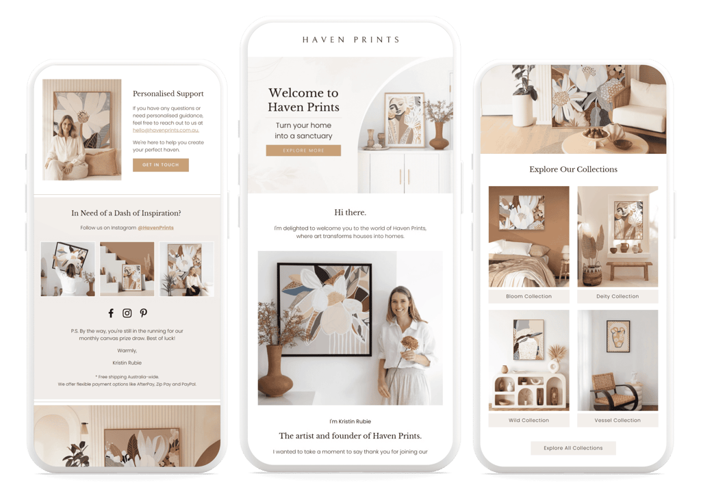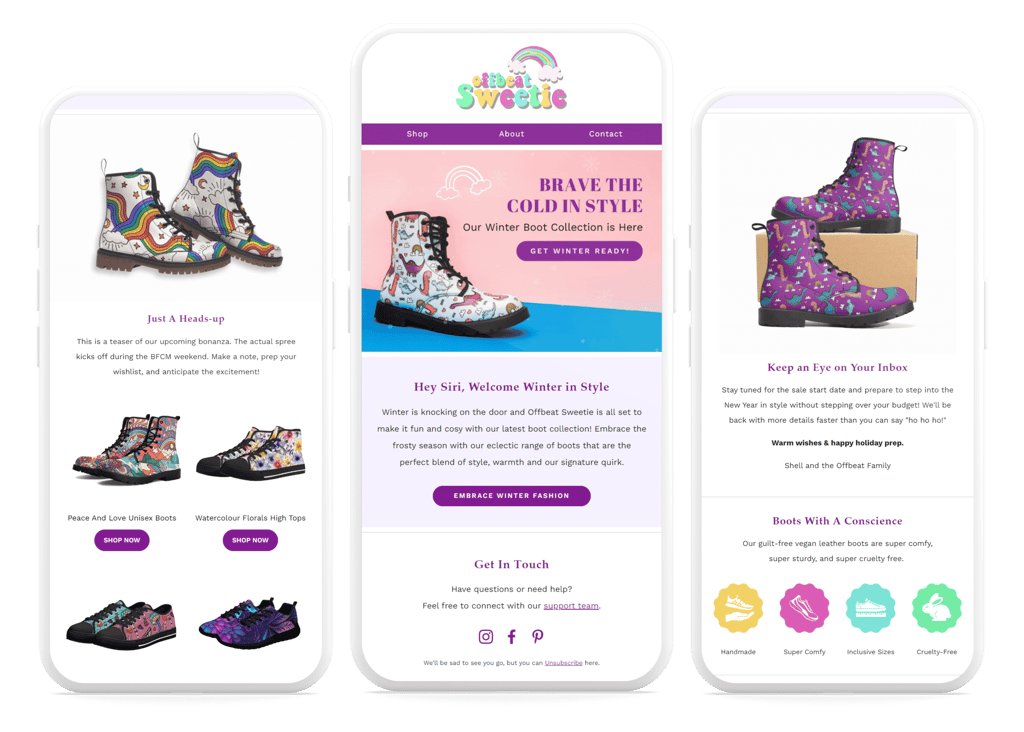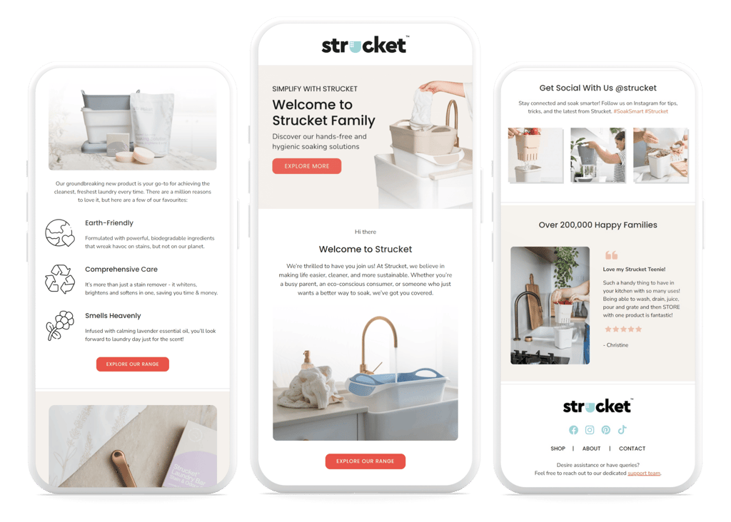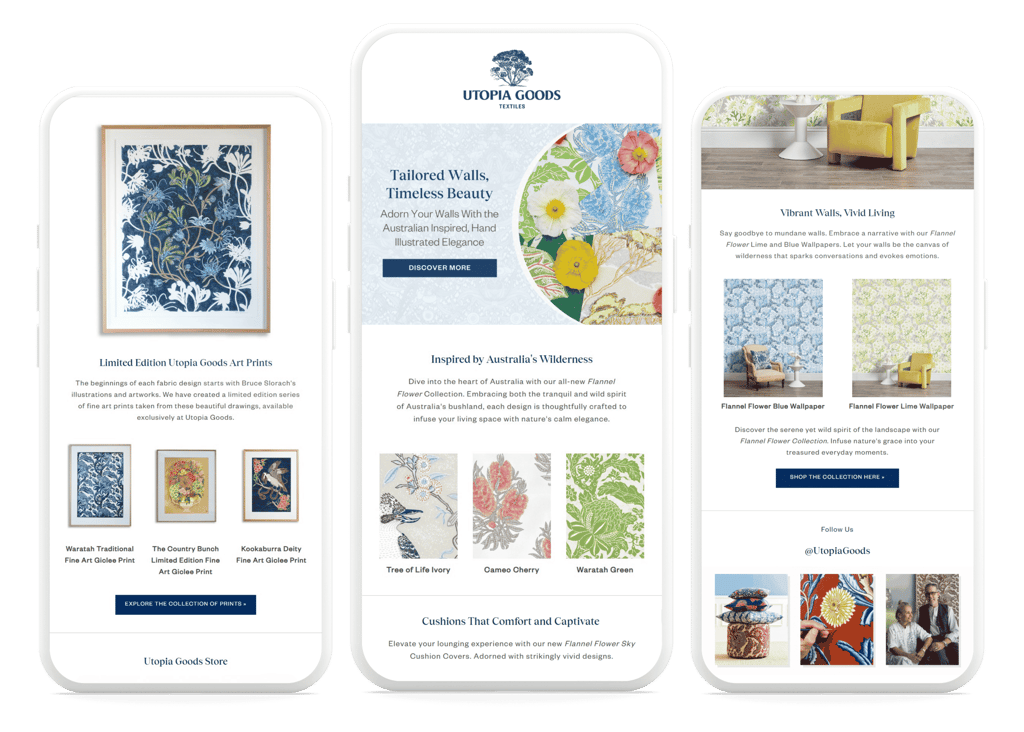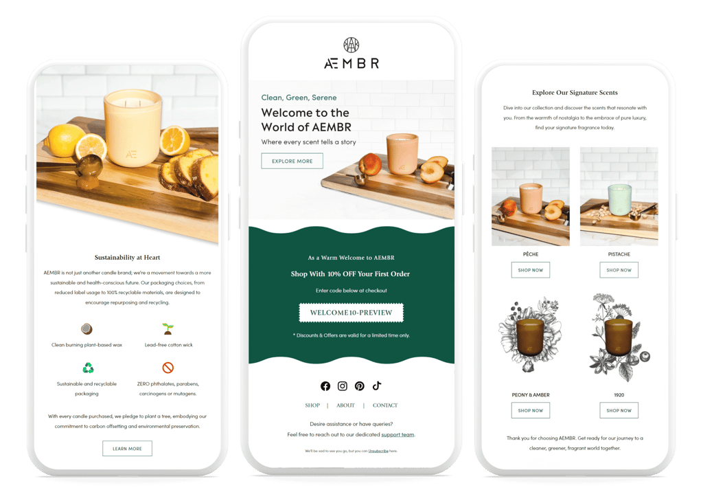 A selection of Klaviyo email templates designed for clarity, brand consistency, and retention. The previews below highlight how we structure emails for readability, hierarchy, and long-term use across email campaigns.
