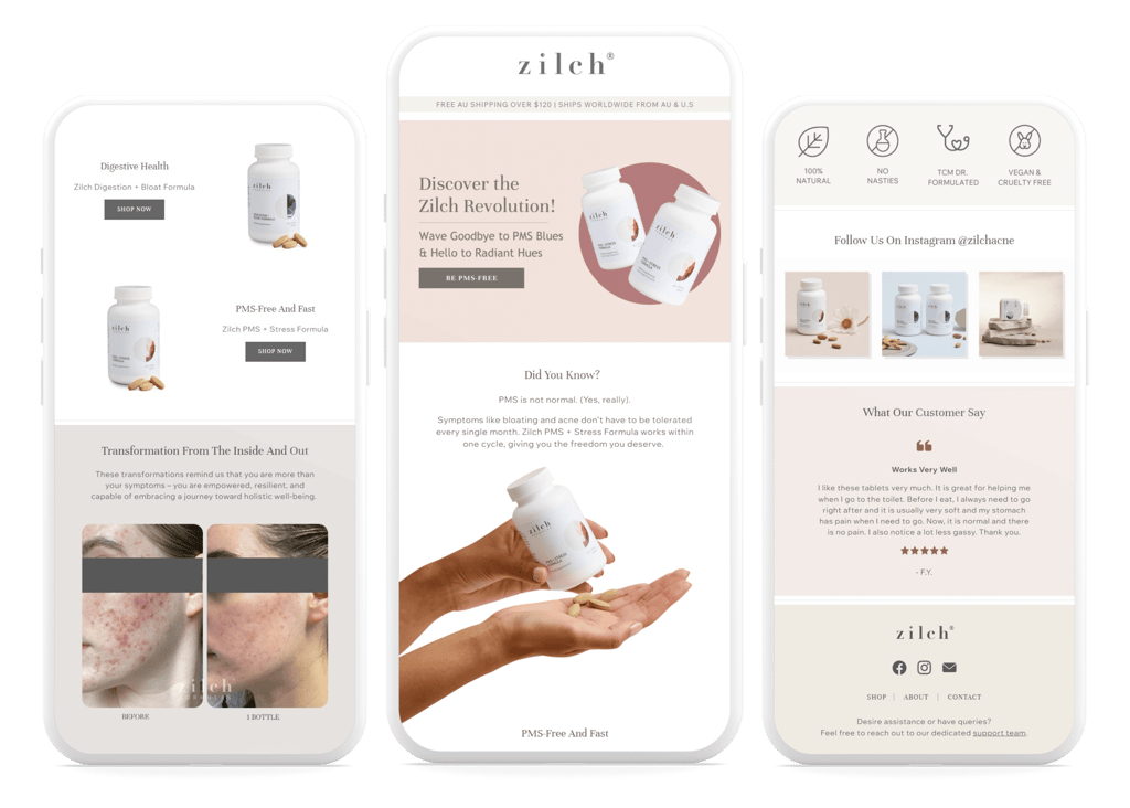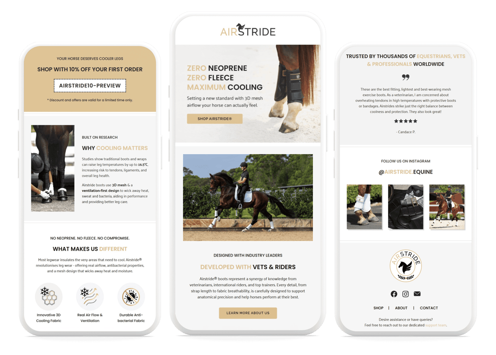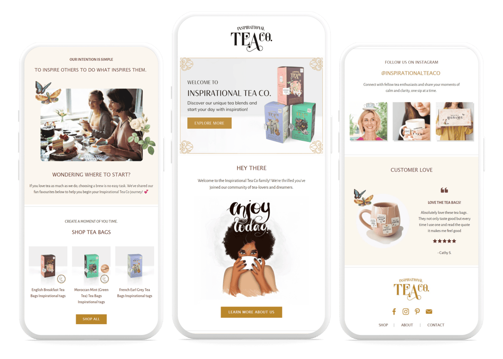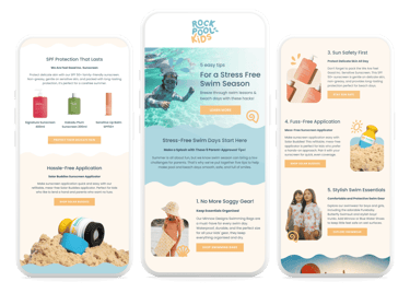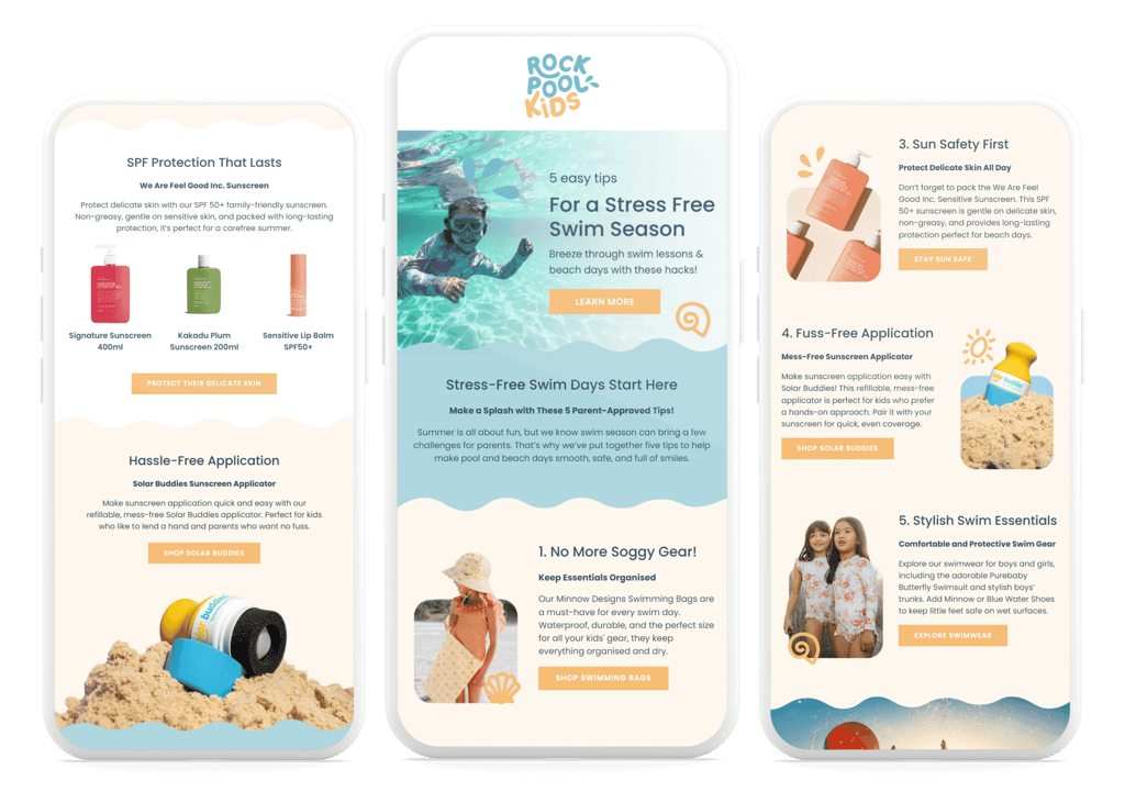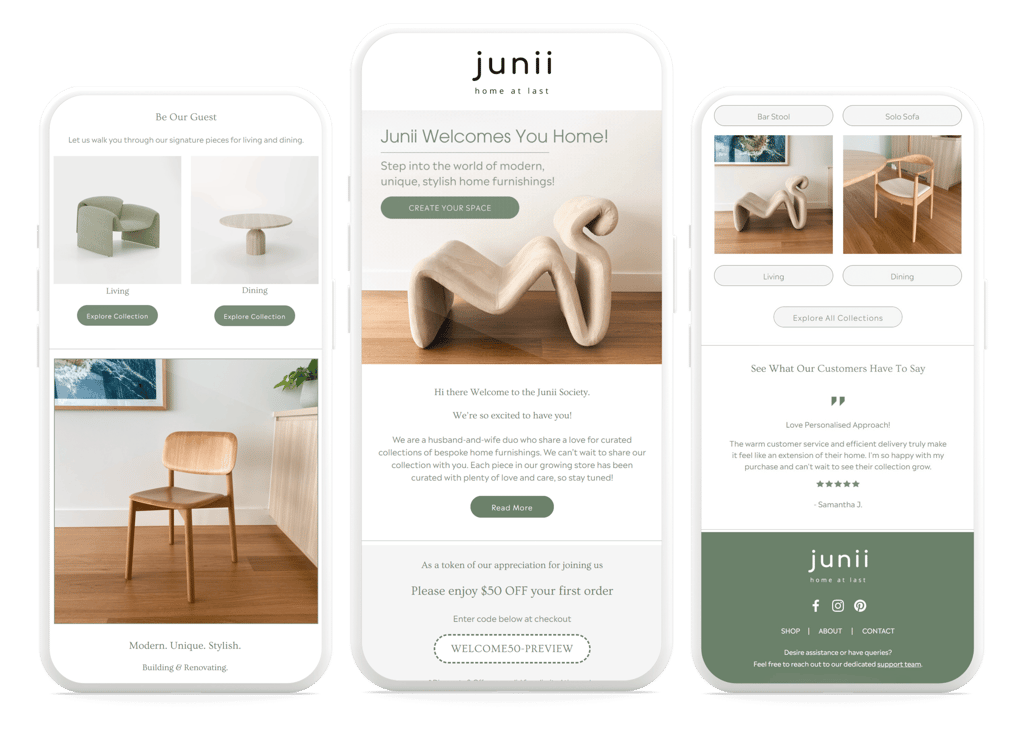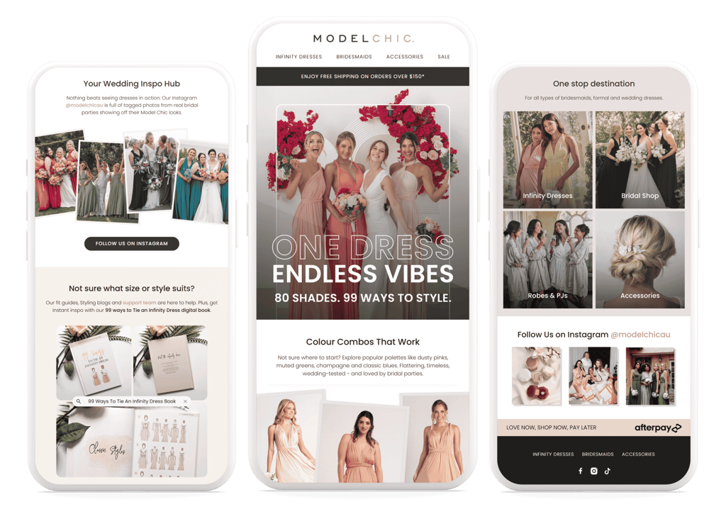 A selection of Klaviyo email templates designed for clarity, brand consistency, and retention. The previews below highlight how we structure emails for readability, hierarchy, and long-term use across email campaigns.