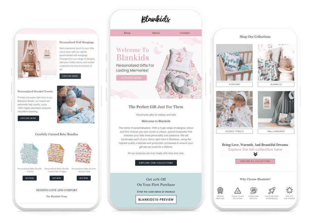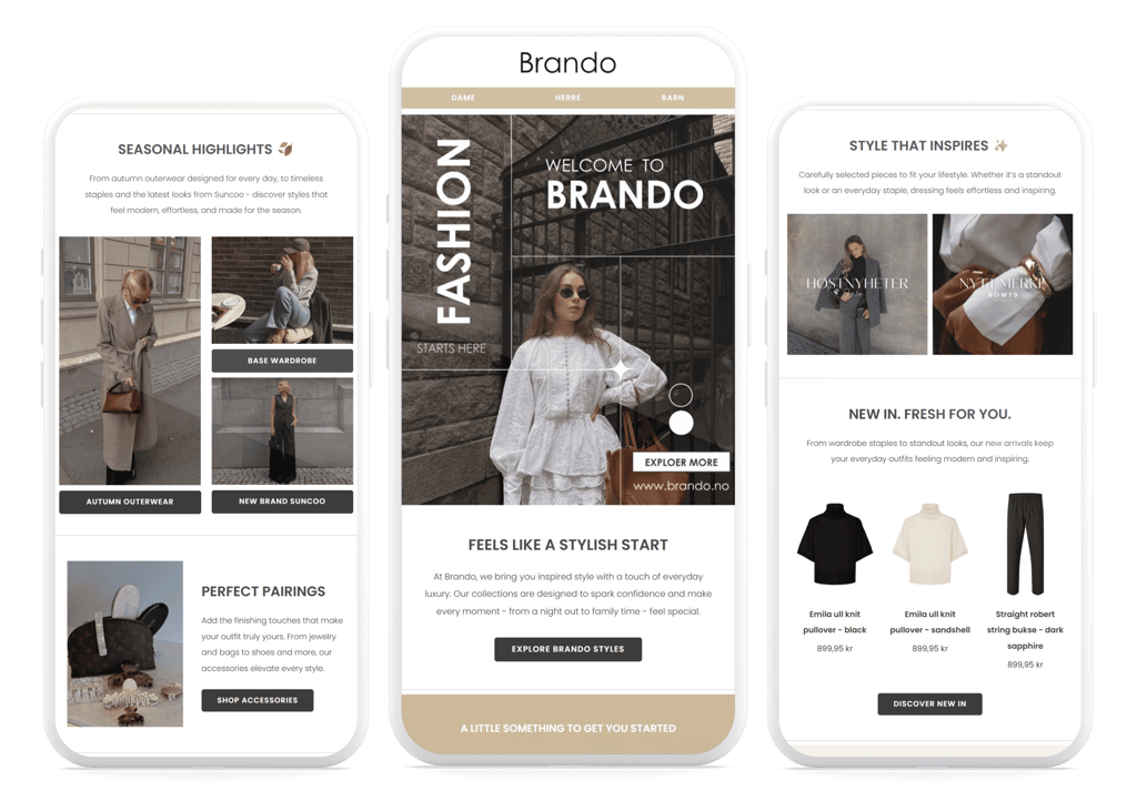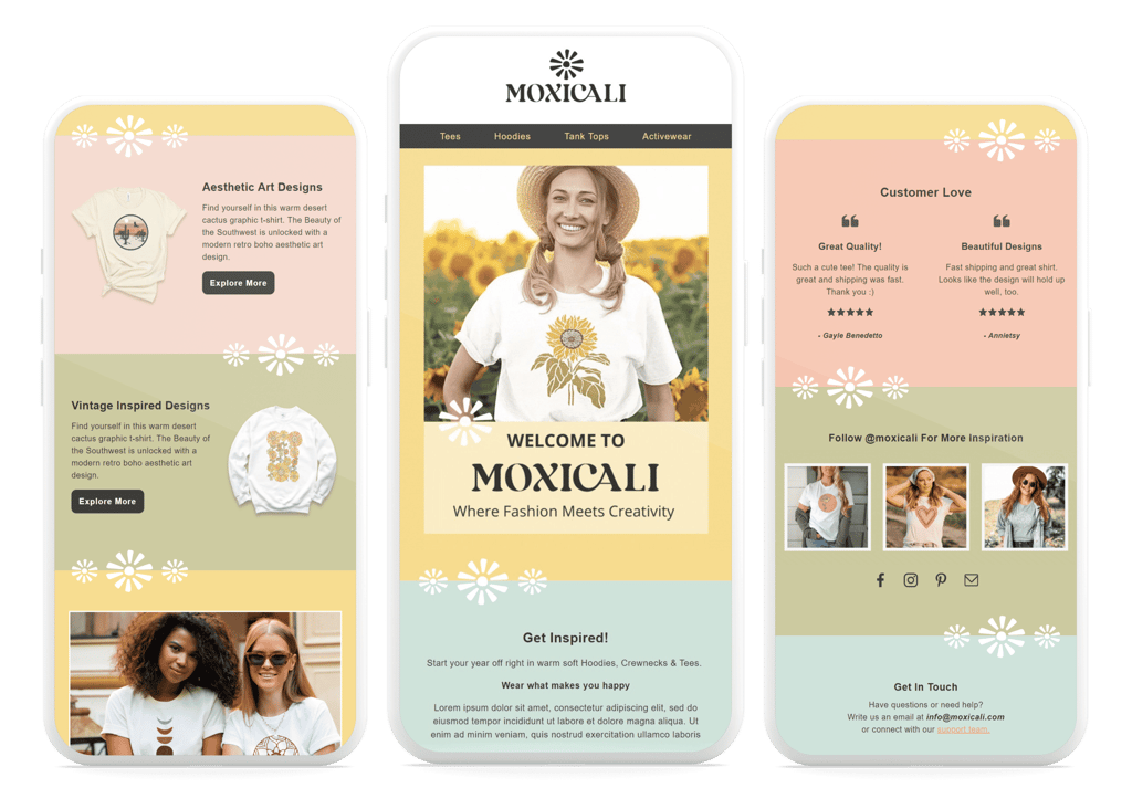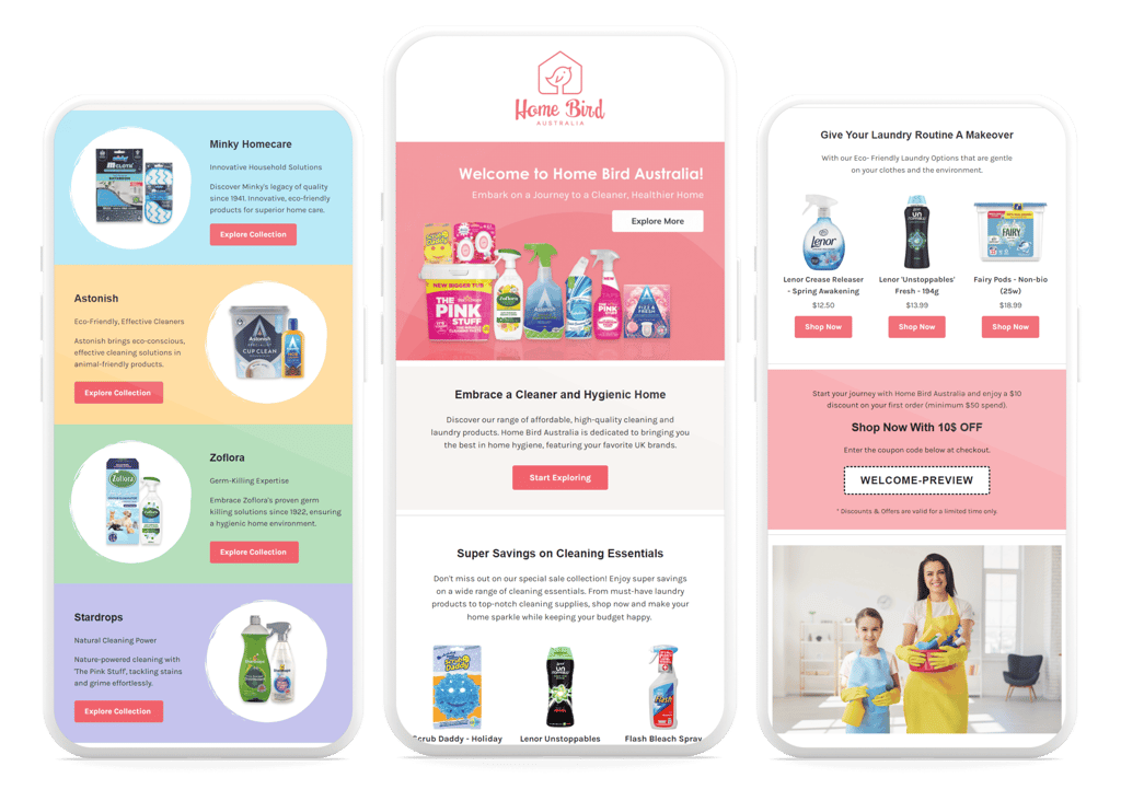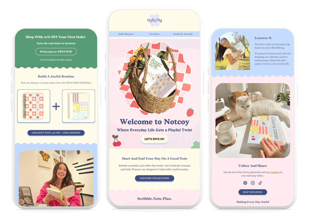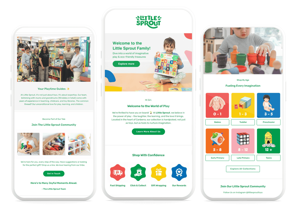 A selection of Klaviyo email templates designed for clarity, brand consistency, and retention. The previews below highlight how we structure emails for readability, hierarchy, and long-term use across email campaigns.
