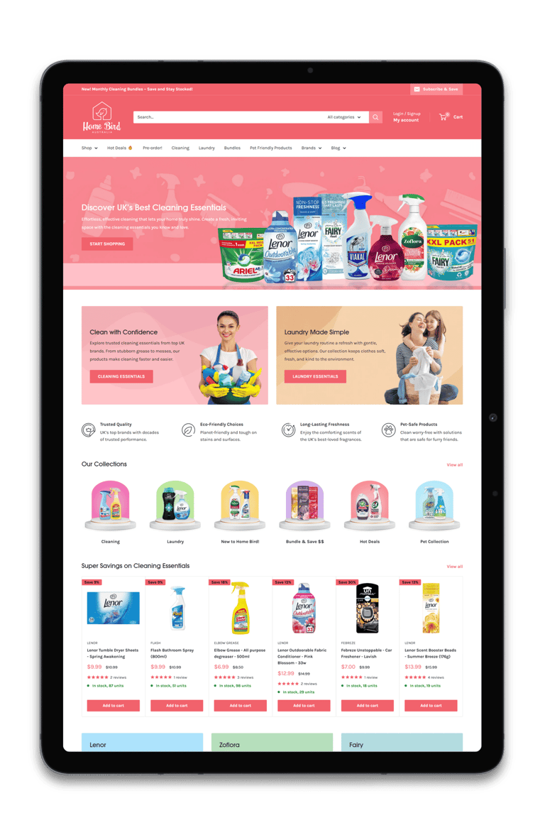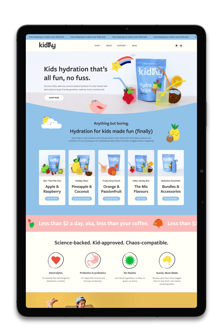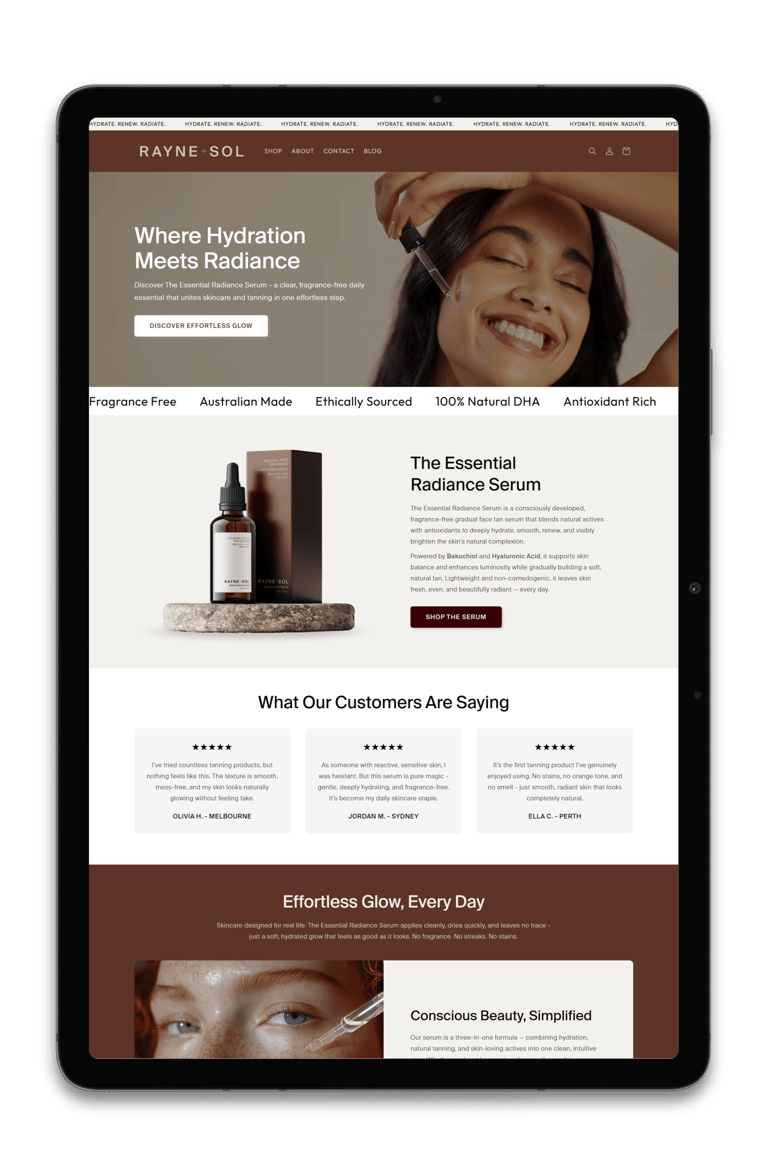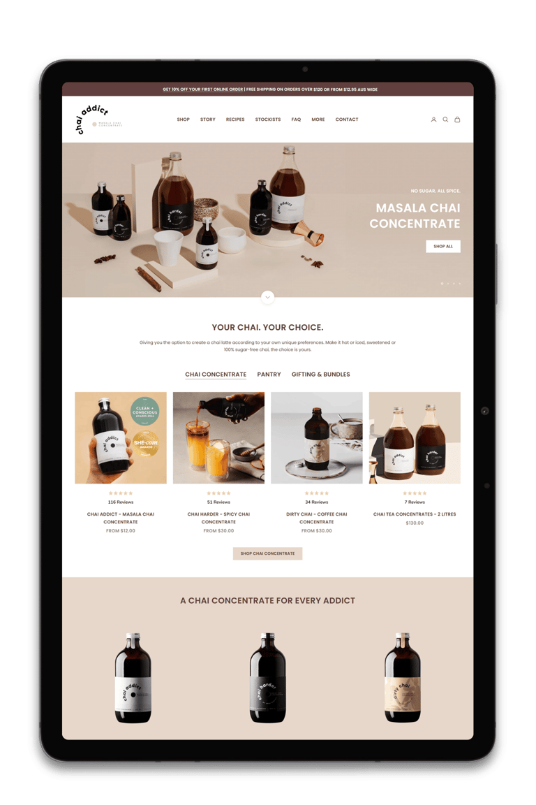 A curated selection of Shopify store designs and revamps, showcasing our approach to structure, clarity and conversion across a range of brands and industries, with a strong focus on usability and performance.